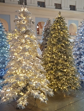 Природа удивительна своими перевоплощениями, преображениями и наши дизайнеры черпают у нее вдохновение при создании не только классических зеленых елей, но и елей в снегу и инее.