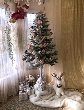 - ели с эффектом имитации метели, когда под буйством порывов ветра снег ложится на каждую ветку неравномерно беспорядочно,